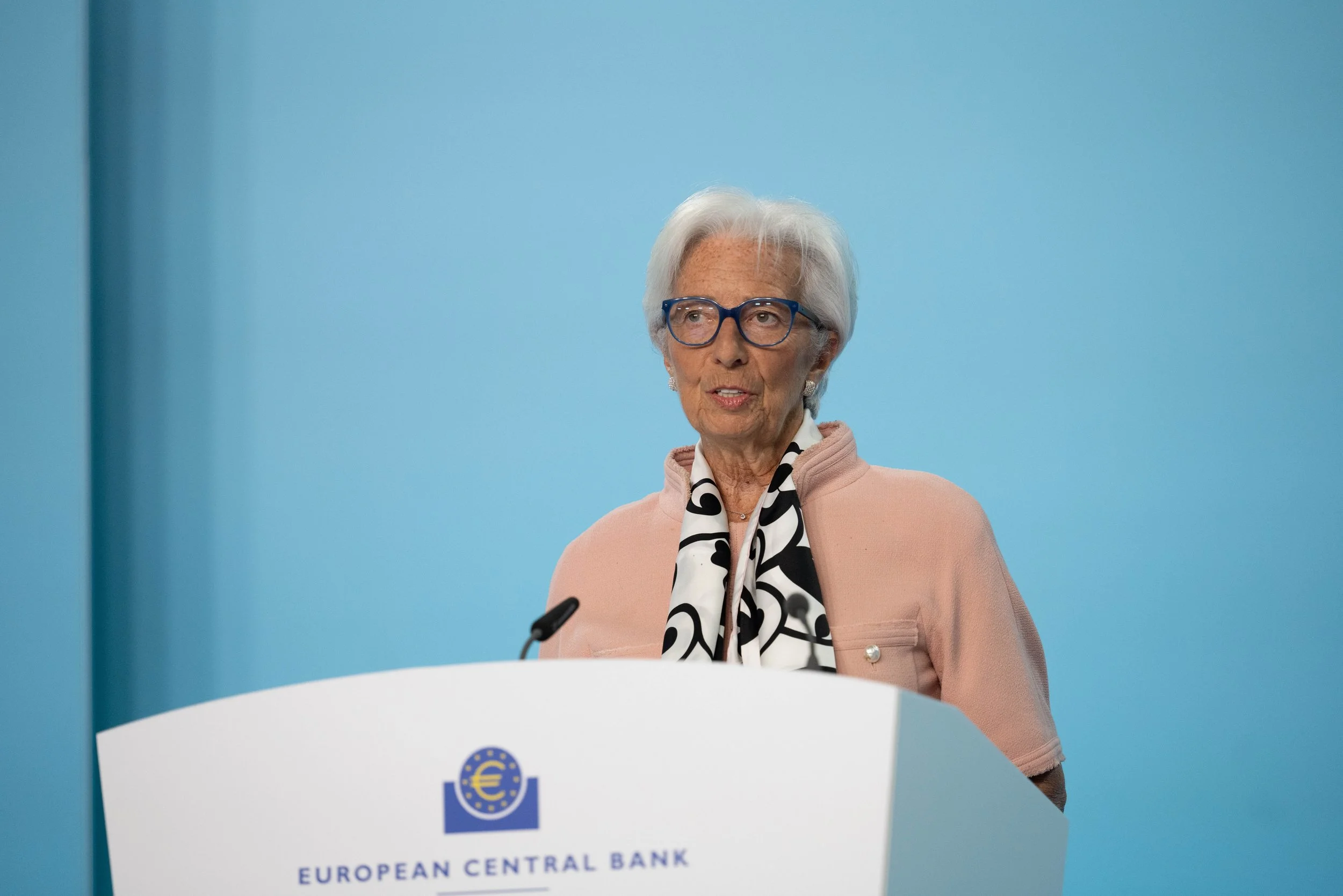 Christine Lagarde, President of the European Central Bank, at a press conference earlier this year. Her remarks focused on the structural role of migration in sustaining Europe’s labour market.